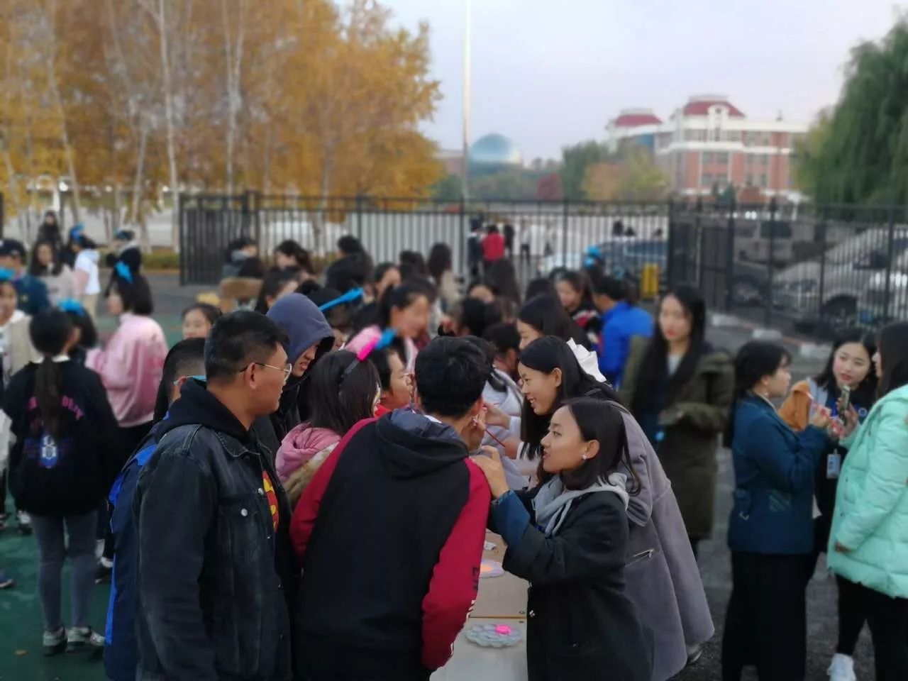 秋風(fēng)蕭瑟中,同學(xué)們早早的到達(dá)了活動現(xiàn)場,簽名墻合影留念。