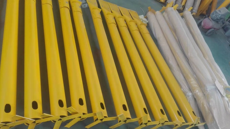施工前檢查測試樁外觀尺寸及內部結構是否完好,接線是否牢固。若產品本身帶引線,檢查其引線長度、絕緣層是否符合圖紙要求。測試樁應符合如下技術要求:1、測試樁由測試樁(含底部固定架)、測試接線板和銘牌幾部分組成。2、測試樁樁體應采用規格為Φ108 的鋼管,長度為3m,測試樁與底部固定座采用焊接連接,底座在現場與水泥基墩連接。3、測試樁外壁(包括底板)應涂敷防腐涂料,通過涂塑工藝處理,面漆為黃色。4、測試樁上應有一個可以上鎖的門,并配有特殊的全線通用的專用鑰匙;測試門內部轉軸及鎖扣檔片制造中應有足夠的強度,以防人為破壞,測試樁門鎖采用在大氣環境下不生銹的材料制作。5、樁體內對應測試門處,應裝有便于測試電纜連接的接線板,接線板應與樁體絕緣,樁體底部應有能使其穩固的結構,樁體頂部應留有安裝銘牌的空間和預留孔,便于銘牌壓接或鉚接。6、接線板應符合下列要求:a.接線板上的接線端子(又稱接線柱)為 6柱型,接線板用絕緣板板制作。b. 接線端子適于連接截面為2.5-10mm2的電纜。7、測試樁銘牌:銘牌為白底黑字不銹鋼銘牌其尺寸大小 140mm×200mm 銘牌上標注管道名稱、里程數、管理單位名稱、聯系電話、編號及測試樁類型等信息,文字采用電解刻字加工。測試樁固定采用集中預制水泥固定墩,再在現場安裝時用水泥溝縫,測試樁與水泥墩縫隙下部采用棉麻封堵。